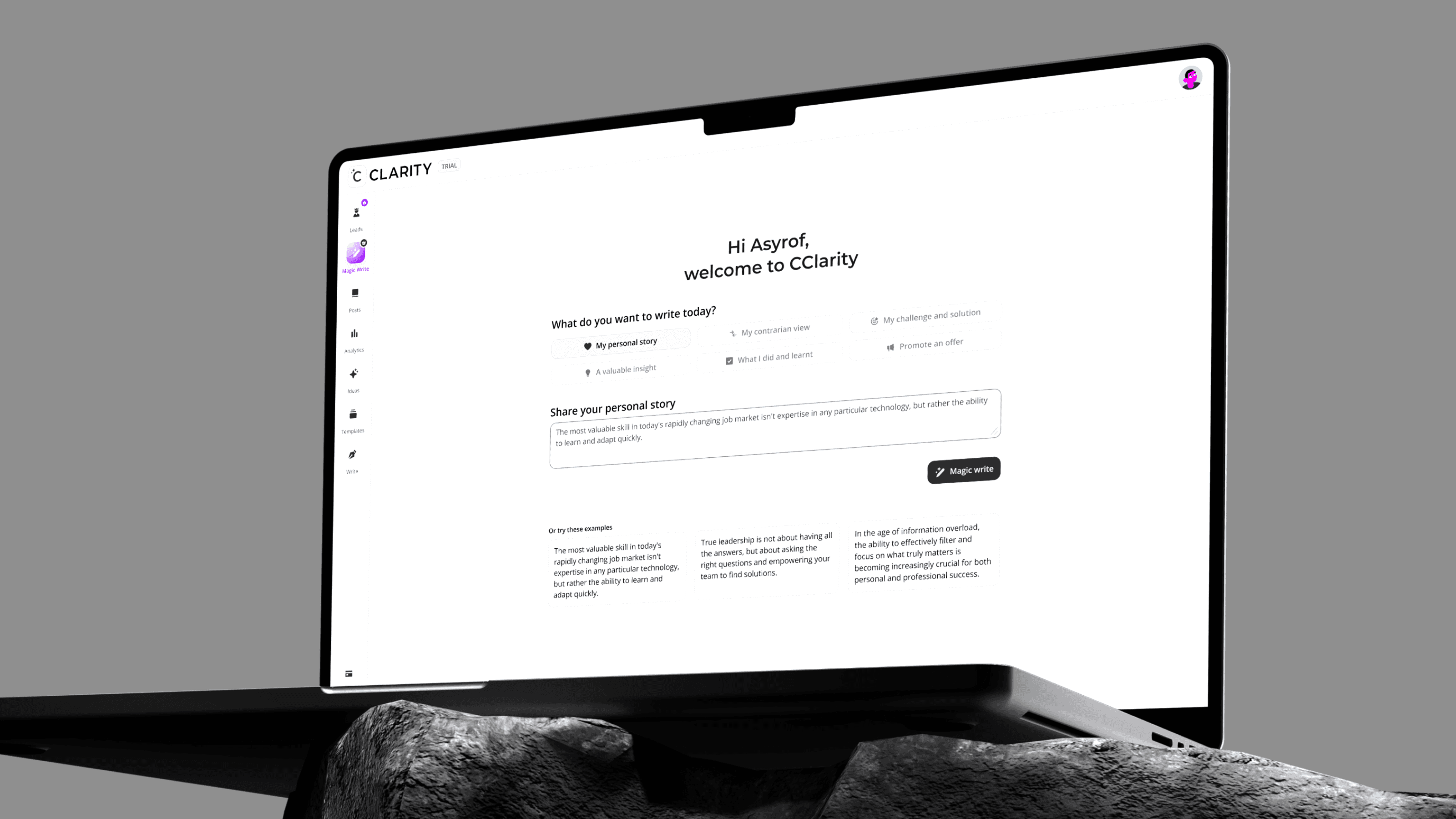"When I brought Asyrof in, Cclarity had a content product that worked. What it didn't have was a way for clients to see their pipeline. They were trusting us blindly, and trust without visibility has a shelf life. Asyrof solved it."