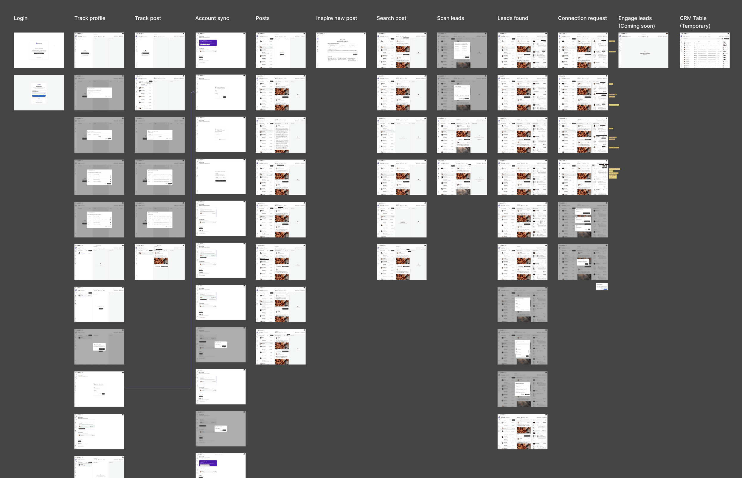 I ran three concept sprints over 2 sprints, one per major surface (signal capture, pipeline board, DM viewer). Low-fidelity concepts were tested with 5 clients each. Key insight from round 1: founders didn't want to manage leads, they wanted to observe them. This reshaped the pipeline from action-first to visibility-first.
